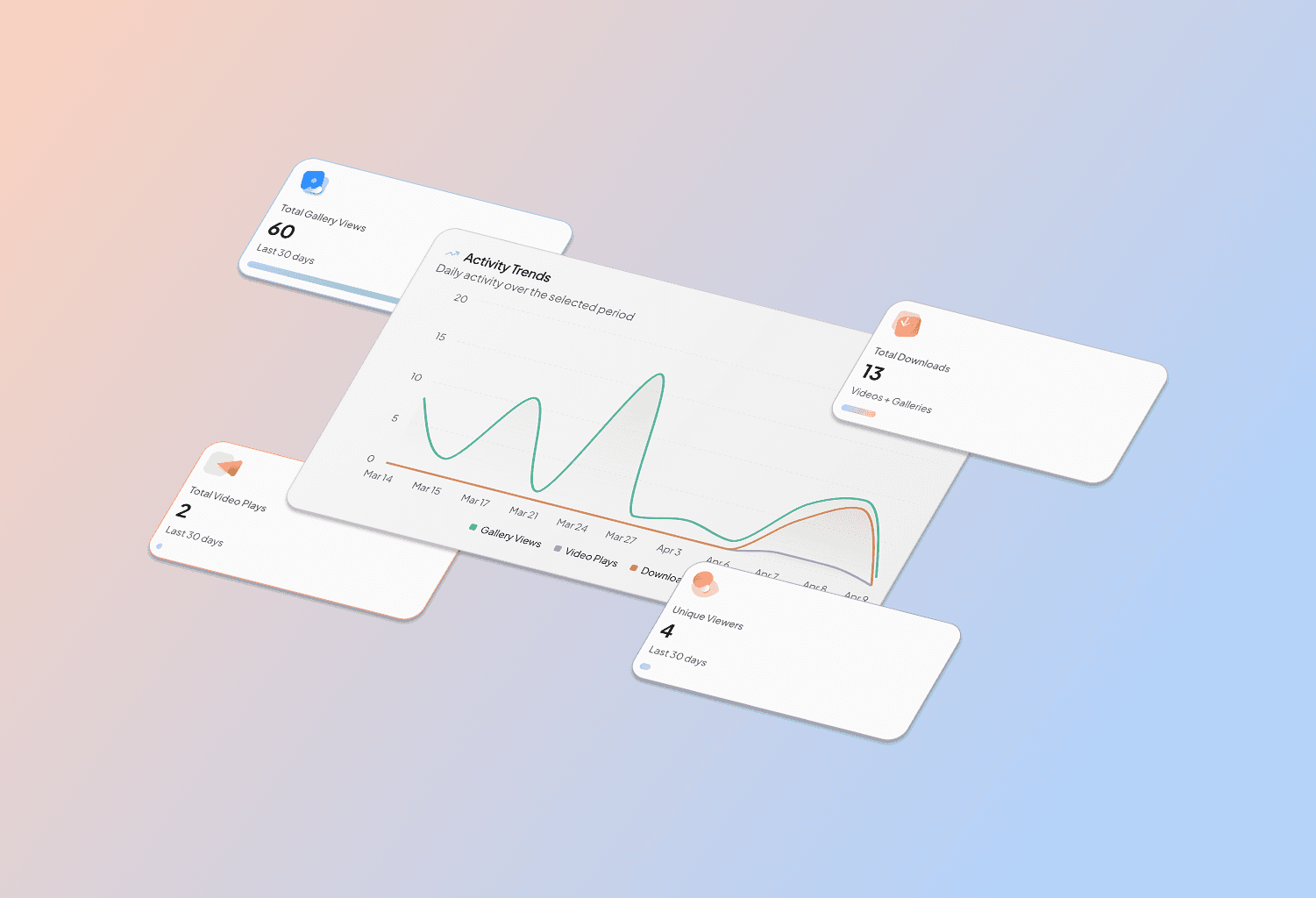 Get notified when your gallery is opened, viewed, or downloaded. Stay connected to how your work is experienced.